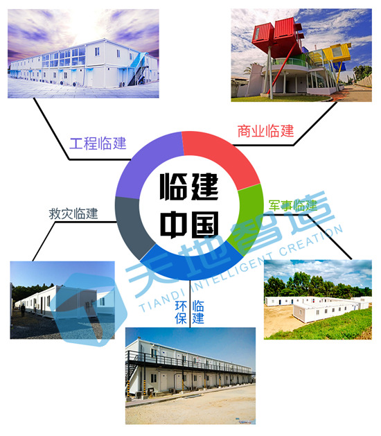 如今,蘇州天地通過(guò)十幾年的技術(shù)創(chuàng)新和產(chǎn)品創(chuàng)新實(shí)現(xiàn)了標(biāo)準(zhǔn)化、模塊化、通用化、系列化、工廠化的生產(chǎn),形成了能夠滿足客戶不同定制需求的五大臨建系列產(chǎn)品,分別為工程臨建、商業(yè)臨建、救災(zāi)臨建、軍事臨建和環(huán)保臨建。