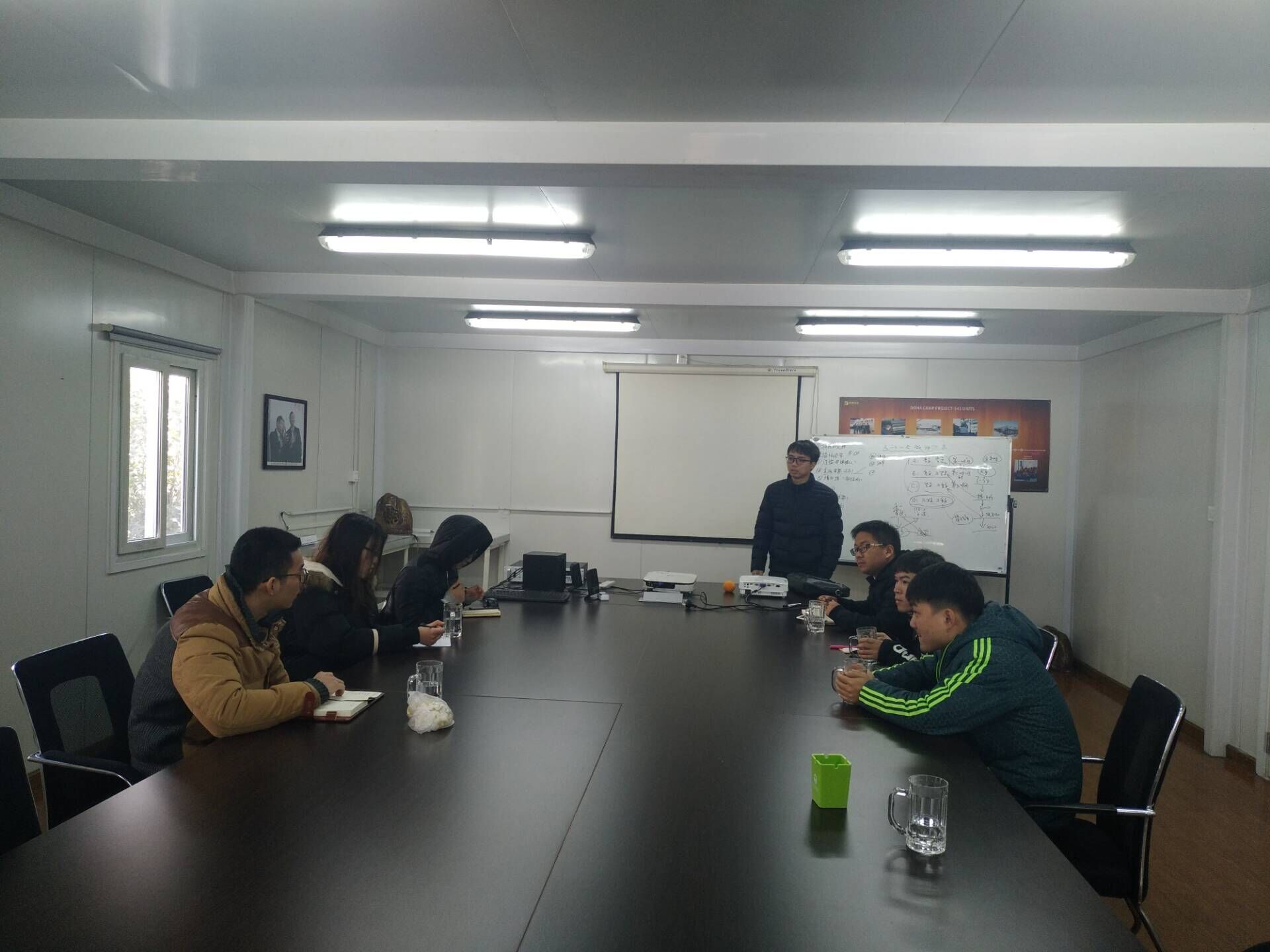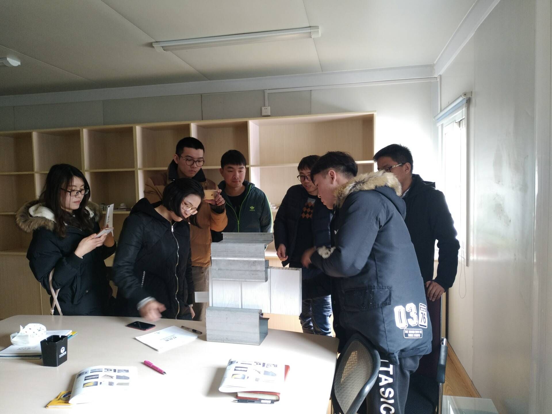 2. 樣品介紹:當(dāng)天下午,曹宇總監(jiān)帶領(lǐng)大家在樣品間進(jìn)行實樣展示。對于新人來說,角柱,立柱,夾板,防水等等這些東西都處于理論的基礎(chǔ)上,實物是最好的老師,曹宇總監(jiān)通過如何將角柱和立柱連接,如何處理頂板防水問題,如何處理內(nèi)部夾板固定等問題,像我們展示了一間模塊化房屋的骨架是怎樣形成的。期間,對于墻板材料,門窗,開關(guān),地板等細(xì)節(jié)都詳細(xì)的解答,并且讓每一個人都上手操作體驗,為未來接待客戶打下堅實的基礎(chǔ)。