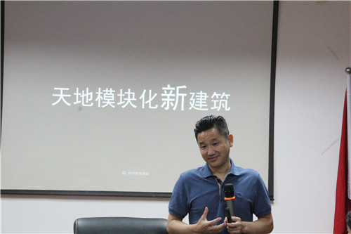以如此激情澎湃的開場來引出蘇州天地全新的理念——模塊化新建筑。何為新建筑?以集裝箱為載體,探索和創(chuàng)造集裝箱的價值,做新建筑。顧名思義,新建筑就是集裝箱+,俞方偉董事長用7個案例來詮釋何為集裝箱+,并再三強(qiáng)調(diào)新建筑就是未來。要求全體員工銘記,用創(chuàng)新驅(qū)動未來,市場驅(qū)動未來和實(shí)業(yè)驅(qū)動未來這個三個驅(qū)動對公司未來發(fā)展規(guī)劃的重要性。