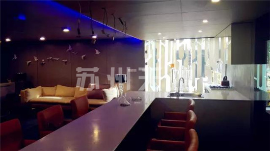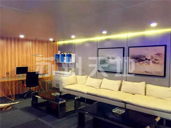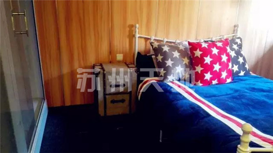 我們暫且不論工地上的集裝箱活動(dòng)房做的宿舍和辦公,今天我們要說的是更加高大上的應(yīng)用。4個(gè)40尺的集裝箱活動(dòng)房設(shè)計(jì)而成,面積約120平方米,這樣的面積能用來做什么呢?它包含包含西餐廳,客廳,客房三部分,配置還是相當(dāng)齊全的。打開玻璃門,首先到達(dá)的是西餐廳,餐桌可供7~9個(gè)人一起共進(jìn)晚餐。當(dāng)夜幕降臨,與親朋好友同坐于此,打開餐桌上面棒子般設(shè)計(jì)的吊燈,點(diǎn)燃燭臺(tái)上的蠟燭,橘黃色的燈光打在香噴的飯菜上,再配上音樂,此時(shí)此刻,這番景象是不是感覺萬般浪漫與幸福。接著是我們的客廳部分。相信墻壁上正在飛翔的鴿子一定會(huì)吸引大家的眼球,使整個(gè)空間馬上變得輕松活潑。打開墻壁上暗藏的燈帶以及零星散步的筒燈,燈光灑向水泥板制作的墻面和辦公地毯鋪就的地面,點(diǎn),線,面在這里相互融合,凸顯著無限迷人的魅力。愛好藝術(shù)的人們放一些自己喜歡的藝術(shù)品到墻柜上也是一個(gè)不錯(cuò)的選擇。最后就是客房了。由免漆板做的墻壁光鮮亮麗,而地面采用的辦公地毯則粗狂了許多,腳踩上較為松軟,給人的也是別樣的感覺。另外仿集裝箱活動(dòng)房做的床頭柜也會(huì)給人耳目一新的感覺,給生活多了一點(diǎn)藝術(shù)氣息。