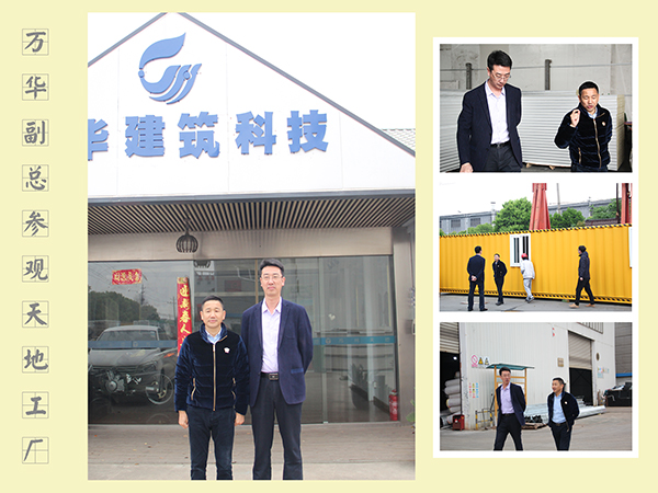 4月10日,央企萬華科技副總劉長江一行在董事長俞方偉帶領(lǐng)下參觀蘇州天地工廠并就合作生產(chǎn)事宜展開敘述討論。作為全球最大的MDI制造企業(yè),萬華科技集團曾多次與蘇州天地簽署戰(zhàn)略合作協(xié)議,此次就上月合作的緬甸集裝箱房屋生產(chǎn)細節(jié)和工期作進一步的討論和說明。