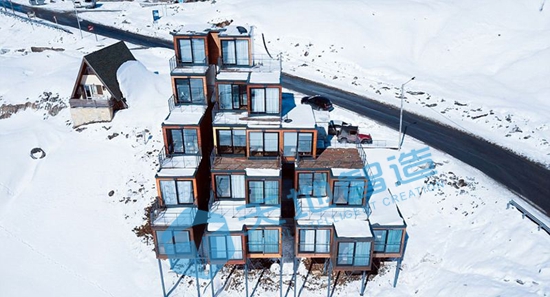 集裝箱披風掛雪地匍匐成酒店的模樣