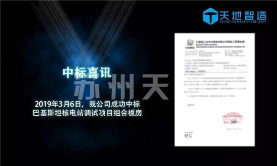 3月6日,蘇州天地收到中核集團發(fā)來的中標(biāo)通知書,確定蘇州天地為巴基斯坦核電站調(diào)試項目活動房項目的中標(biāo)單位,中標(biāo)金額更是高達人民幣800萬元。