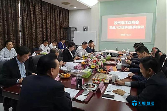 10月25日下午,蘇州市江西商會三屆八次理事(監(jiān)事)會議在會長企業(yè)江蘇碧海安全玻璃科技股份有限公司成功召開。蘇州天地董事長俞方偉作為商會理事參加了此次會議。會議就商會換屆、扶貧幫扶方式和經費籌措等多項議題進行了審議。會長杜康主持會議。