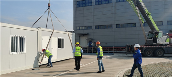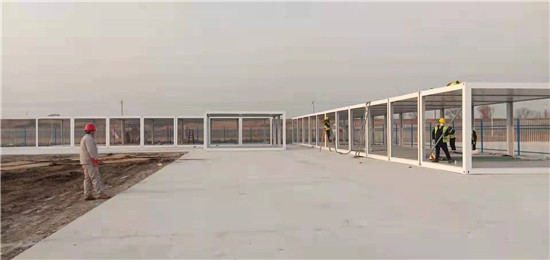 比如,將傳統(tǒng)的鋼筋水泥建造的辦公室,變成以打包箱為載體的箱式辦公室,讓建造時(shí)間更快——工廠內(nèi)預(yù)制,現(xiàn)場(chǎng)四小時(shí)可安裝好一套,拎電腦即可辦公……